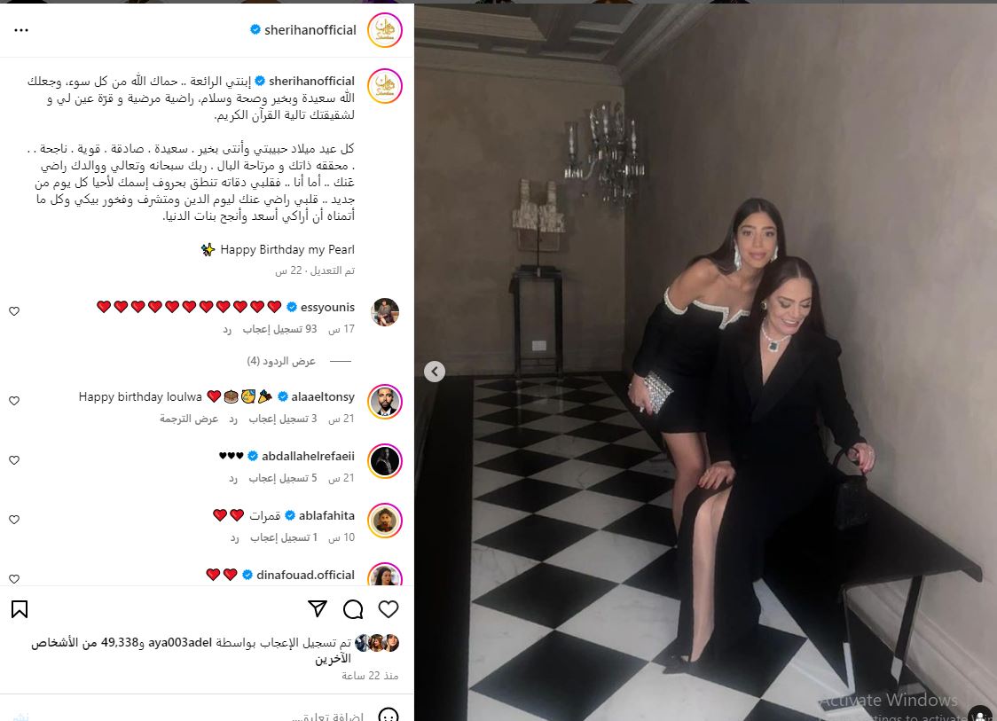 بحروف من نبض القلب وحنان و دفء حضن الأم هنأت النجمة القديرة شريهان ابنتها لولوة في عيد ميلادها بـ رسالة مؤثرة ملئية بالمشاعر الفياضة لتبرز مدى حبها وتعلقها بابنتها.