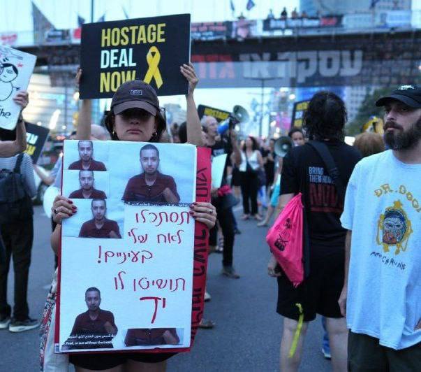 تظاهرت شقيقة هيرش جولدبيرج بولين الأسير لدى حماس في غزة، للمطالبة بإطلاق سراحه في شارع بيغن في تل أبيب.
