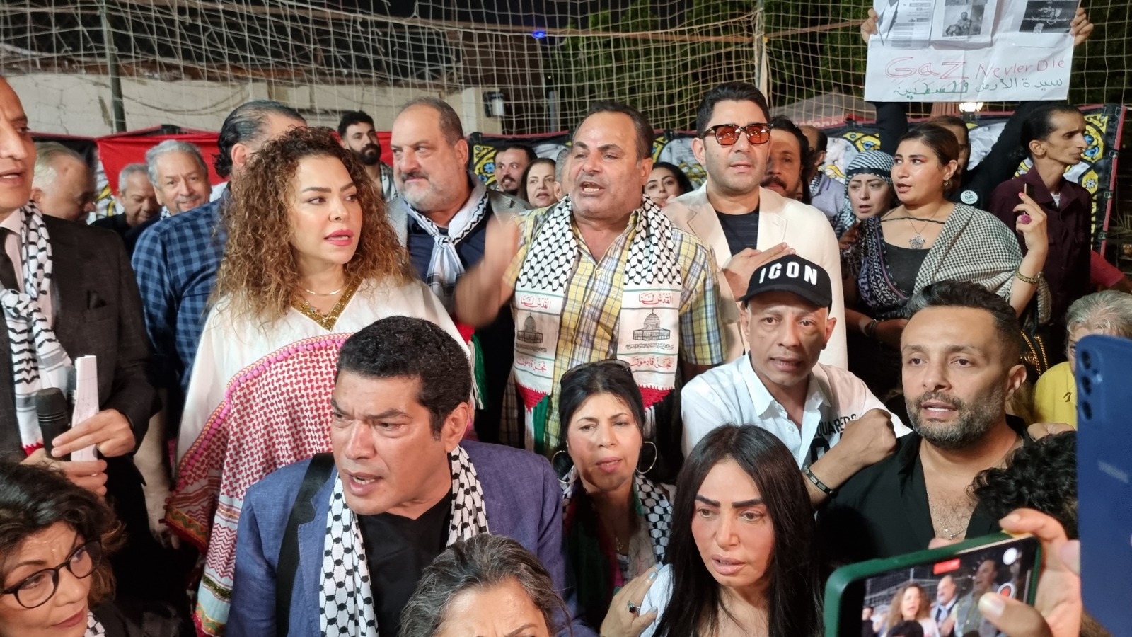 فيما شارك العديد من نجوم الفن في مصر بوقفة تضامنية، نظمتها نقابة المهن التمثيلية لدعم شعب فلسطين في حربه ضد العدوان الإسرائيلي، وشارك فيها العديد من الفنانين، مثل: باسم سمرة وخالد الصاوي وسيد رجب، و أحمد عبد العزيز وعمرو عبد الجليل و وجومانا مراد، ووفاء عامر ولبلبة ونرمين الفقي وأنوشكا ومحمد محمود وأحمد بدير وسلوى خطاب وحمادة هلال وعبد العزيز مخيون والمخرج مجدي أحمد علي ومها أحمد ومجدي كامل ورنا رئيس وسماح أنور وسيمون ومحمد رياض وهاجر الشرنوبي وإيهاب فهمي، مع نقيب المهن التمثيلية أشرف زكي.