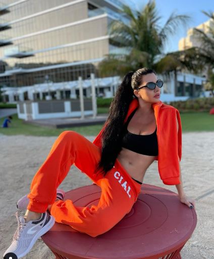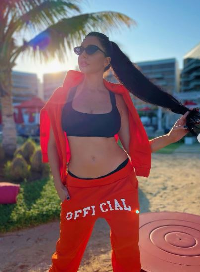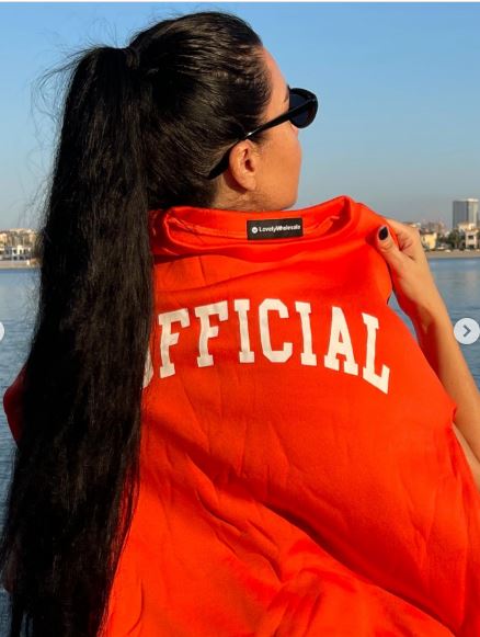 وبدت لاميتا بإطلالة رياضية، حيث ارتدت توب قصير مما كشف خصرها وعليه ترينج باللون البرتقالي، فيما انتعلت حذاء رياضي باللون الأبيض.