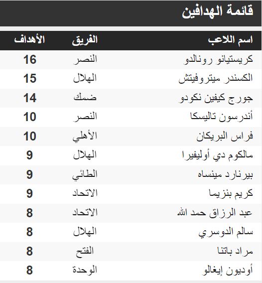 جدول ترتيب هدافين الدوري السعودي بعد انتهاء الجولة 17