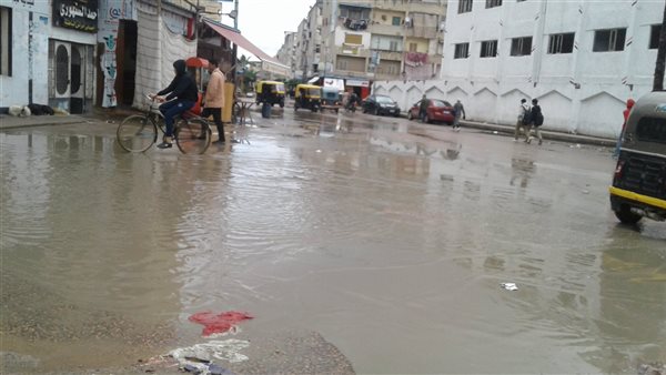 وارع إلي بحيرات من المياة الناجمة عن الأمطار الغزيرة ، التي لاتتوقف منذ ساعتين ، وخلت الشوارع من المواطنين ، الذين فضلوا البقاء داخل منازلهم ،بسبب البرودة الشديدة .